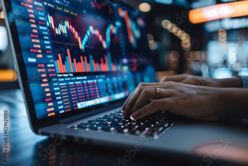 Person typing laptop, data screen
