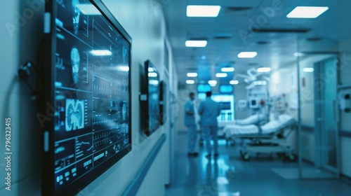Person walking down hospital hallway, suitable for medical and healthcare concepts