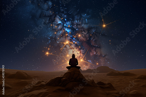 Personne en traine de méditer avec un paysage spirituel, IA générative, Générative, IA
