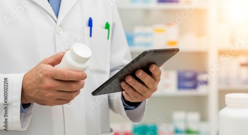 apothecary, man, male, adult, white, laboratory, coat, pocket, pen, marker, bottle, tablet, device, medicine, medication, hand, wrinkle, closeup, pharmacy, retail, store, background, shelf, product, health care, examine, review, check, prescription, drug, technology, tool, sharpened, detail, professional, occupation, warm, interior, clinical, inventory, standing, equipment, medicals, doctor, holding, business, people, hospital, health