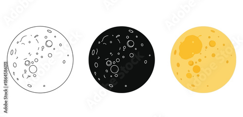 Phases of the Moon Vector Set in Three Styles — Line Art, Silhouette and Color Version for Islamic Design, App UI, Posters and Branding