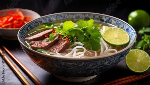 pho, beef, broth, asian, lime, coriander, soup, traditional, exotic, aromatic, slight, homemade, healthy, dish, authentic, herb