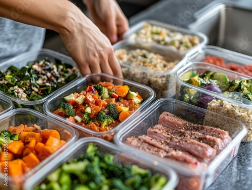 Photo of a person meal-prepping with neatly packed containers of nutritious food