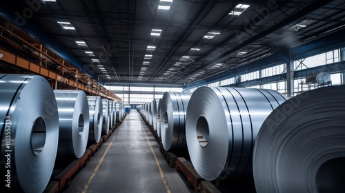 Photo of large rolls of aluminum at a processing plant, focusing on the scale and storage of metal materials,