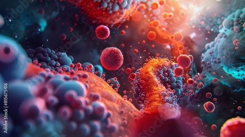 photo realistic vibrant and detailed capturing the intricate of blood cells in their microscopic world, minimalism
