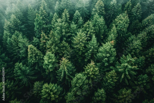 photograph of a coniferous forest from a drone