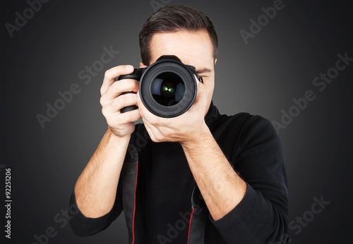 92, photographer, camera, photo, lens, photographing, sharpened, journalist, man, one person, surveillance, holding, spy, closeup, black