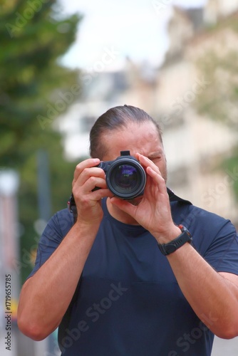 photographer, man, person, male, concentrating, camera, condensed, lens, outdoors, photo, photo, photograph, digital, photographing, picture, face, journalist, technology, shot, hand, holding, professional, model, photogenic, shooting, portrait, action, equipment, capture, travel, tour tourism, urban, city, daylight, hobby, amateur, activity, leisure, snapshot