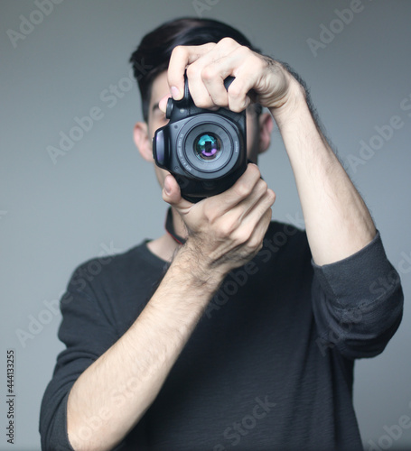 camera, photographer, photo, photo, lens, isolated, photograph, digital, woman, white, young, portrait, photographing, person, professional, people, journalist, holding, paparazzi, picture, studio, face, sharpened, technology, beauty