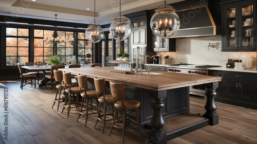 Photorealistic Transitional Kitchen Design: 2023 Interior Trends Combining Traditional and Modern Aesthetics Created with A Fusion of AI Powered Models