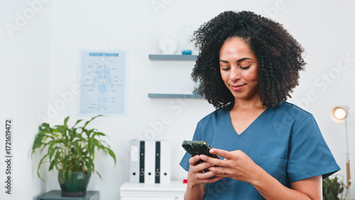 physical therapist, clinic, health care, healer, rehabilitation, rehab, patient, mobile, smartphone, female, woman, scrub, medicals, care, professional, wellness, health, equipment, desk, plant, greenery, interior, therapy, training, exercise, treatment, sharpened, calm, confident, tech, device, information, digital, office, clinician, routine, empathy, professionalism, safety, recovery, support, healing, progress, comfort, environment