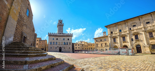 Piazza Grande and Palazzo Comunale in Montepulciano. Tuscany, Italy