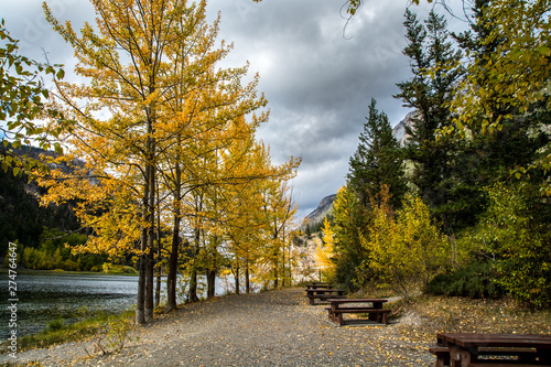 Picnic place. Area of Good feeling. Yellow trees and leafs.