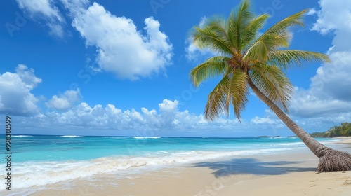 Picture a coconut tree with its long, arching fronds reaching towards the sky.