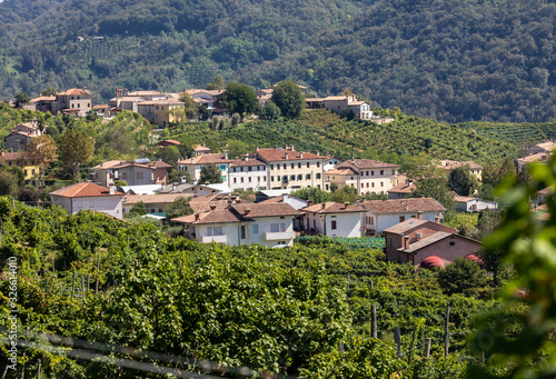 Picturesque hills with vineyards of the Prosecco sparkling wine region between Valdobbiadene and Conegliano; Italy.
