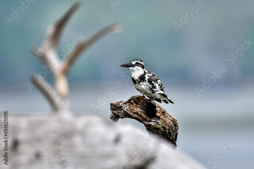 Pied kingfisher on tree