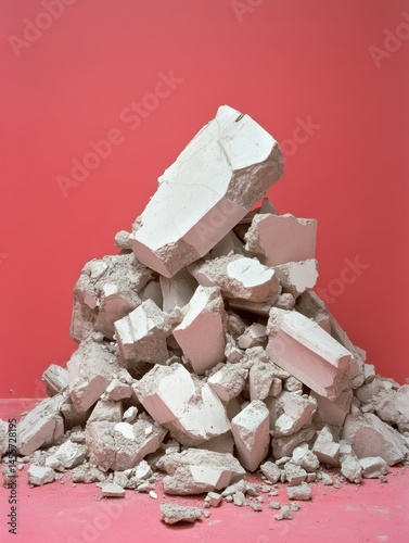 Pile of Concrete Rubble Against a Vibrant Pink Background in a Studio Setting for Creative Use