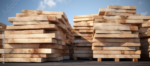 Piles of wooden boards in the sawmill, planking.