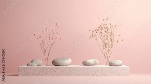 Pink Aesthetic Still Life with Flowers and Stones