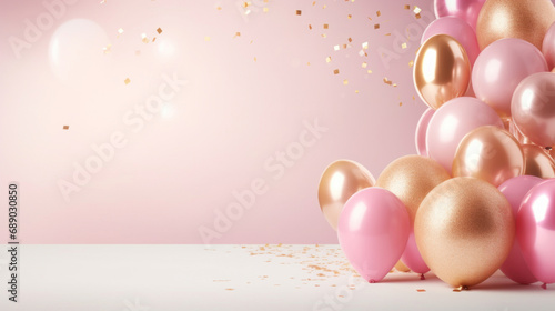 Pink and golden balloons on festive background