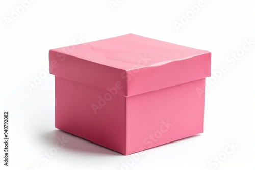 Pink Box. Isolated Gift Box in Red Cube Shape on White Background
