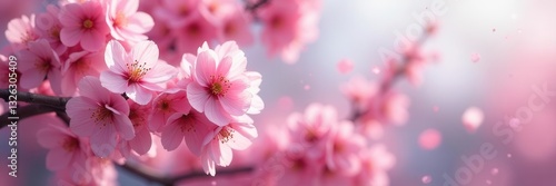 Pink cherry blossoms in full bloom, branches overflowing , japanese, floral