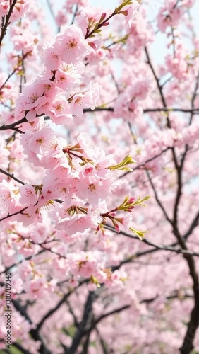 Pink cherry blossoms swaying in the soft breeze of spring, soothing, trees, cherry blossoms