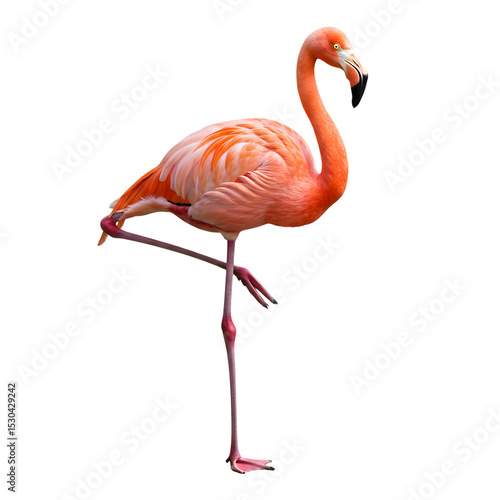 Pink Flamingo: Elegant Bird on One Leg, Isolated on Black Background