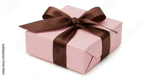 Pink Gift Box with Brown Ribbon Isolated on White Background Presenting Elegance and Celebration for Special Occasions