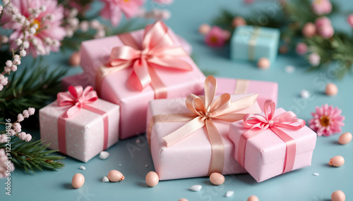 gift box, present, gift wrapping, holiday season, christmas gift, pink flower, floral arrangement, shopping, light pink, holiday decorations, festive season