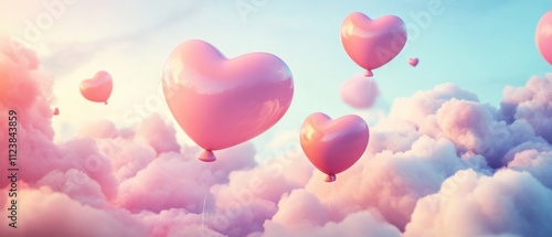 Pink Heart Balloons Floating in a Dreamy Pastel Sky, Romantic Valentines Day Image