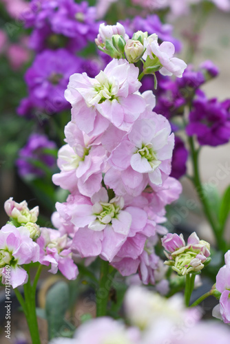Pink Hoary Stock, Pink Hoary Stock or Matthiola Incana is a member of the Brassicaceae family of flowering plants. It's also commonly known as Brompton Stock, Common Stock, Pink flower in garden