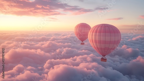 Pink Hot Air Balloons Soaring Above Clouds at Sunset