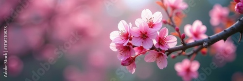 Pink hue of Wild Himalayan Cherry flowers on tree branches, flora, blossom, tree