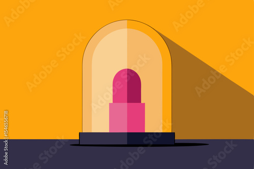 pink lipstick in glass dome under warm lighting