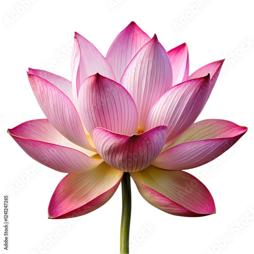 Pink lotus flower blossom isolated on detailed petals nature photography on transparent background