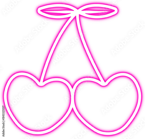 neon, cherry, fruit, outline, pink, glowing, light, icon, symbol, illustration, graphic, design, art, modern, retro, pop, vibrant, bright, simple, minimalist, clean, isolated, white, background, food, sweet, cute, decoration, sticker
