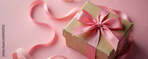 Pink ribbon tied around a box made of brown paper and twine, pink, present, decoration
