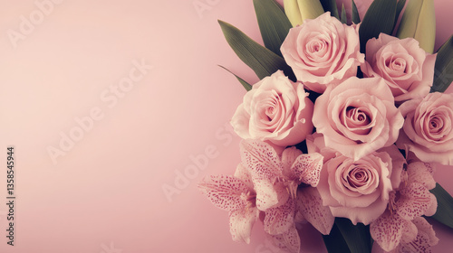 pink, rose, orchid, flower, pastel, background, bouquet, floral, arrangement, leaf, blossom, bloom, nature, romantic, elegant, soft, delicate, beauty, decoration, gift, love, celebration, spring, summer, fresh, natural, green, foliage, serene, peaceful, gentle, feminine, stylish, composition, artistic, design, texture, vibrant
