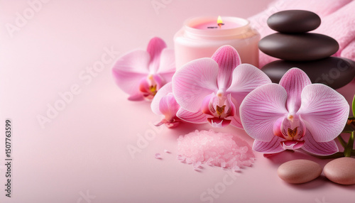pink spa orchid theme objects on pastel background