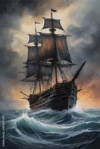 pirate ship enveloped in a mysterious ambiance of the sea.