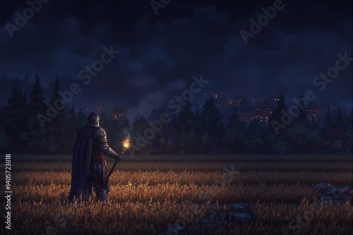 pixel art of knight holding a torch at night,walking through wheat fields,retro,rpg,fantasy
