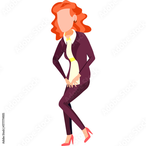 woman, business, suit, pixelated, illustration, cartoon, character, female, adult, young, office, professional, work, standing, white background, isolated, vector, drawing, art, design, fashion, clothing, attire, outfit, corporate, employment, career, job, person, human, figure, icon, graphic, style, modern, simple, clean, flat, red hair, shoe