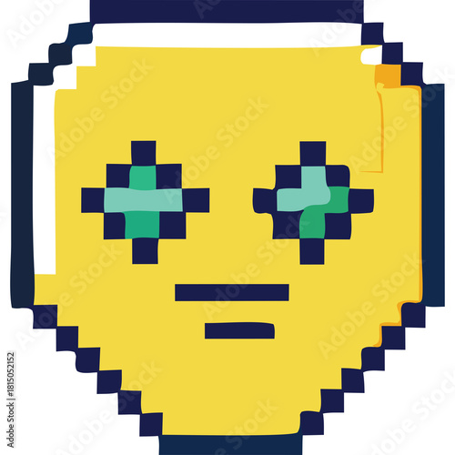 Pixelated Yellow Face with Diamond Eyes and Closed Mouth on Transparent Background in 8 Bit Style