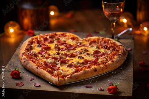 Pizza for Valentine's Day. Festive menu. Fast food, restaurant, cafe