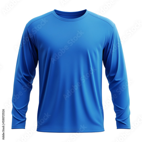 Plain classic blue long sleeve round neck t-shirt 3D mockup presenting a stylish front view for apparel design on white background