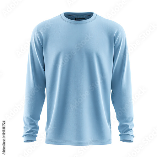 shirt, apparel, clothing, garment, top, sleeve, long, blue, light, pastel, casual attire, cotton, textile, fabric, fashion, style, blank, template, design, wear, unisex, simplicity, isolated, background, black, soft, formal, elegance, comfort, minimalist, plain, solid, clothes rack, collection, merchandise, lifestyle, item, object, photo, photograph, studio, shot, render, display, presentation, product, surface