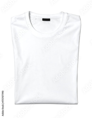 Plain white t-shirt, folded neatly on a white background