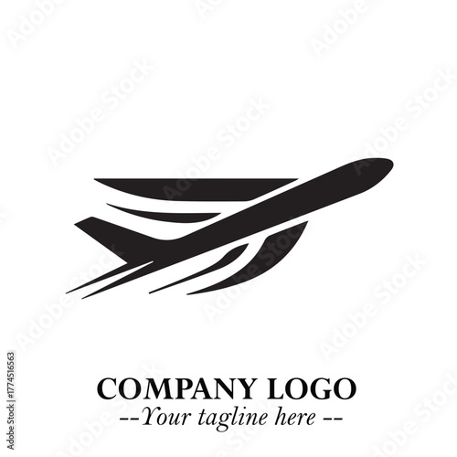 Plane Flying Fast Logo Symbol in Black on the White Background with Dynamic Aviation Design