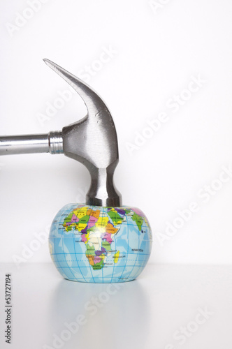 earth, nature, planet, destroy, pollution, harm, globe, solid, sphere, green, sea, africa, concept, blue, idea, shadow, toy, ball, color image, topography, nobody, copy space, finger, human